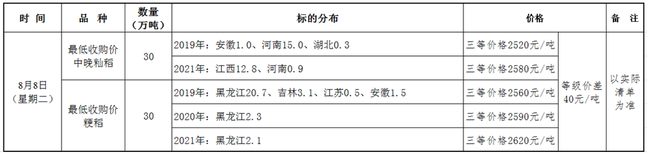 注:销售价格等级差40元/吨;本交易安排为预公告,交易日的实际销售数量以湖北粮网官网发布的交易清单为准。