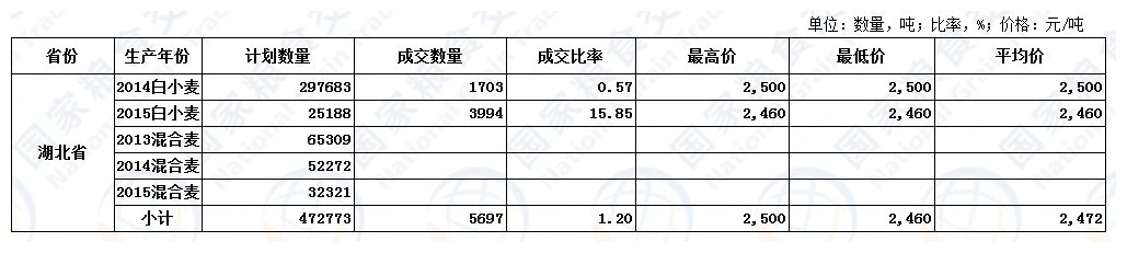 10月24日湖北小麦交易结果
